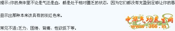 提示:你体内的津液处于一种匮乏状态了,至少已经不能满足唇部皮肤的水分保障的程度了。