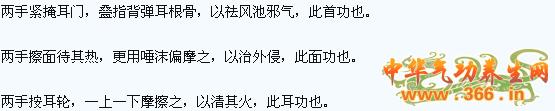 大张其口,以舌搅口,以手鸣天鼓,以治其热,此口功也。