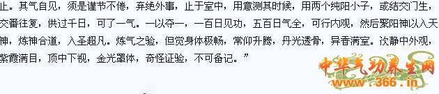 《张三丰太极炼丹秘诀》卷三载:“《真诀》曰:凡春三月肝气旺。肝旺者,以父母真气,随天度运而在肝。若遇木日,甲乙克土,于辰戊丑未之时,依时火起炼脾气,余日兑卦时,损金以耗肺气,是时不可下功也。坎卦时,依法起火炼肾气,震卦时,入室,多入少出,息住为上,久闭次之,数至一千息为度。当时内观如法,一任冥心闭目,青色自见,渐渐升身以入泥丸。自寅至辰,以满震卦(一千息以上优佳,以息息渐微为度,如息佳不须连数)。凡夏三月心气旺。心旺者,以父母真气,随天度运而在心。若遇火日,丙丁克金,于兑卦时,依法起火炼肺气,余日坎卦时,损水以耗肾气,是时不可下功也。震卦时,依法起火炼肝气。离卦时,入室依前行持,赤色自见,渐渐升身以入泥丸。自已至未,以满离卦(一千息以上尤佳,其说如前)。凡秋三月肺气旺。肺旺者,以父母真气,随天度运而在肺。若遇金日,庚辛克木。于震卦时,依法起火炼肝气,是时不可下功也。巽卦时,依法起火炼脾气。兑卦时,入室依前行持,白色自见,渐渐升身以入泥丸,自申至戌,以满兑卦。凡冬三月肾气旺。肾旺者,以父母真气,随天度运而在肾。若遇水日,壬癸克火。于离卦时,依法起火炼心气,余日辰戊丑未时,损土以耗脾气,是时不可下功也。兑卦时,依法起火炼肺气。坎卦时,入室依前行持,黑色自见,渐渐升身以入泥丸。自亥至丑,以满坎卦。《道要》曰:凡行此法,不限年月日时,一依前法,以至见验方