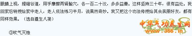 在距自己两米远处,点一支腊烛,盘坐以鼻深吸气,充满胸腔,然后以口吹气,同时提缩会阴,丹田用力,尽量将气吹远,能把腊烛吹灭,功夫成。