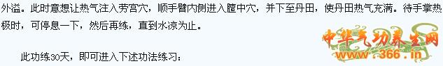 此功法每天可练三十分钟,共练九十天左右,即可进入第三步功法之练习。