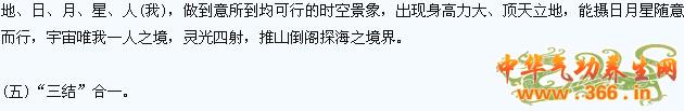 (四)功法后几部分为鹏游大周天,形意拳功法,能内强外壮,达到开慧三仙境,调理五脏六腑,法病延年。