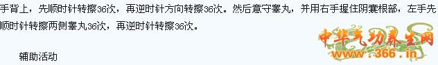 5.擦睾丸:双手搓热,然后一手抓起阴茎和睾丸,另一手擦睾丸36次,再换另一侧擦36次。