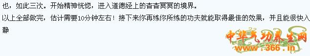 OK,到此时基本上是“松”的一个段落了,这就是松字诀。你是不是觉得很麻烦?但是如果不这么做,你就别想很快入静。大家仔细观察下就可以发现,一个松字诀就已经包括了调息和调心。