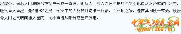 从风水的角度来看,从大门入宅的旺气与财气应尽可能在屋内回旋,为住宅充分利用后,才慢慢流