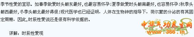 寅时:不少男人很不好意思地说,他们会在夜里突然需求旺盛。对应一下五行时辰就不难理解了。经过第一阶段深睡眠的调整,双方的身体状态都处在极佳的阶段,此阶段交合的精子质量最高,生出来的后代也最聪明强壮,――这是我们的古人经过几千年的观察得出的结论。