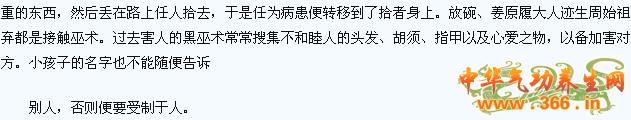 3、诅咒:它是借助语言的魔力,达到加害对方的目的。最常见的形式是面对面的诅咒,不得好死、千刀万剐等等。更多的是通过诅咒对方的名字达到巫术的目的。傣族有一种“放罗”巫术,目的是挑拨别人夫妻关系,自己好插足。做法是从夫妻家坟地的篱笆上取