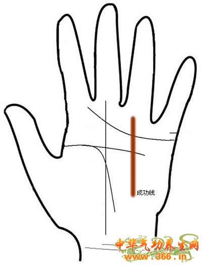 成功线代表的是事业光辉灿烂、成功的一面及能不能将人的事业推到颠峰,享受荣华富贵,看一个人的名声、人缘、贵人运、第六感、身体健康、智慧高否、异性缘、异路财、偏财运、能否逢凶化吉和老运的好坏,太阳线也可以看不动产,若太阳线很早就出现,表示此人年纪轻就有不动产。