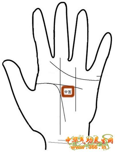 位于手掌心的部份,又称为明堂,会有事业线和感情线交叉,偶而会有成功线来交叉,一般来说此处平坦的人很多,尤其是八卦掌丘丰隆的人,例如水形掌此处看起来有一点凹陷,其实是视觉上的错觉,是看一个人的前途发展性的,也代表人的生活种种历程、安危、苦难、心思、是否纷乱、吉凶悔吝等,以中医学来讲,此处是心肾之交,看生殖系统、血液循环,在面相上此处就是印堂。有人在此处纹路很多、很密,表示此人是劳碌命,钻牛角尖,胡思乱想,西洋手相学称为火星平原或火星野。