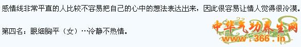 第三名:感情线平直…外冷内热,情感表达不佳。